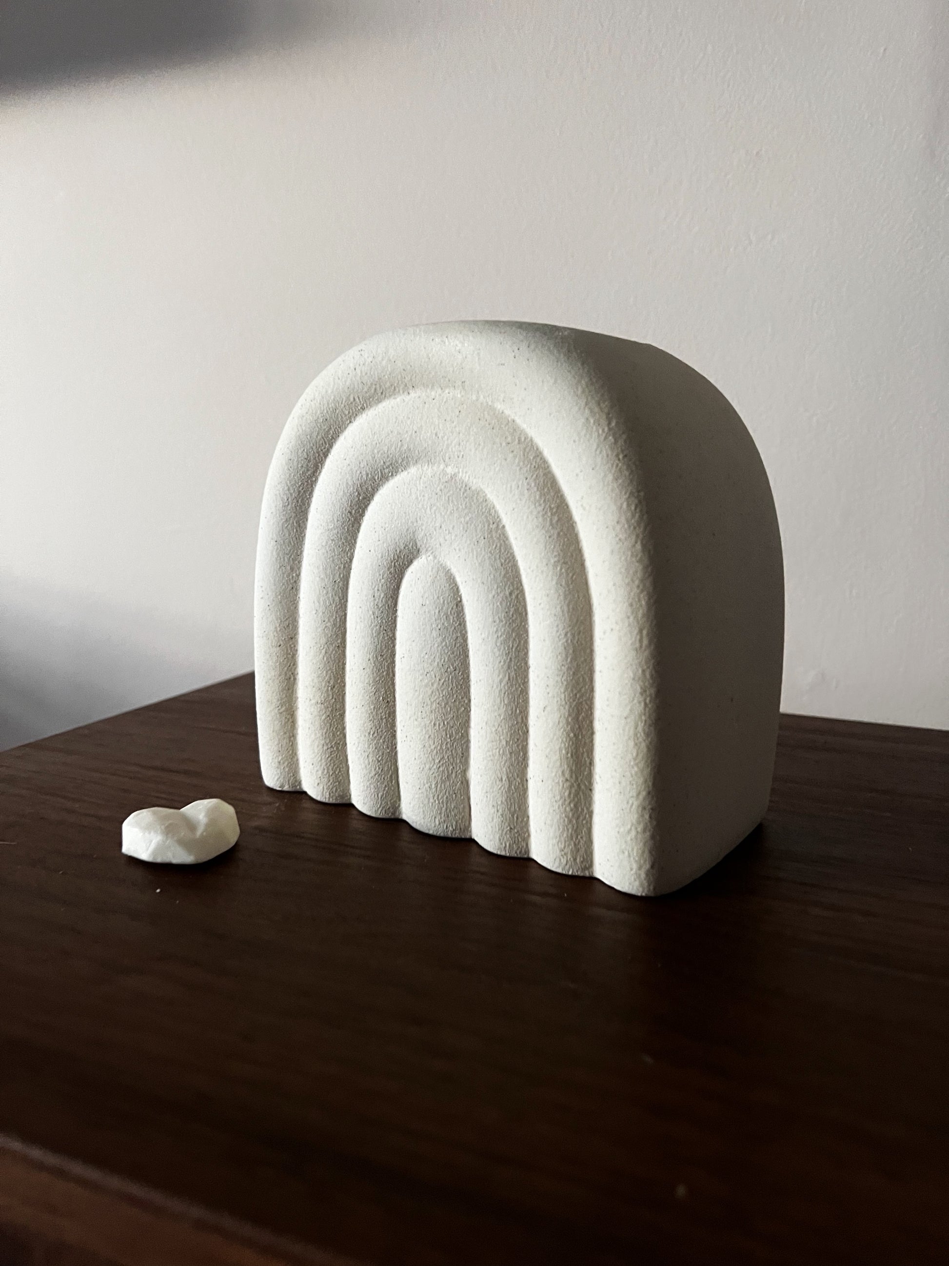 Le brûleur CURVE en forme d'arche apporte une touche sculpturale et apaisante à votre intérieur. Sa teinte crème douce et sa finition mouchetée texturée en font une pièce à la fois décorative et fonctionnelle, parfaite pour sublimer vos fondants parfumés tout en diffusant une ambiance chaleureuse. Son design minimaliste s’accorde aisément avec les intérieurs naturels et contemporains.