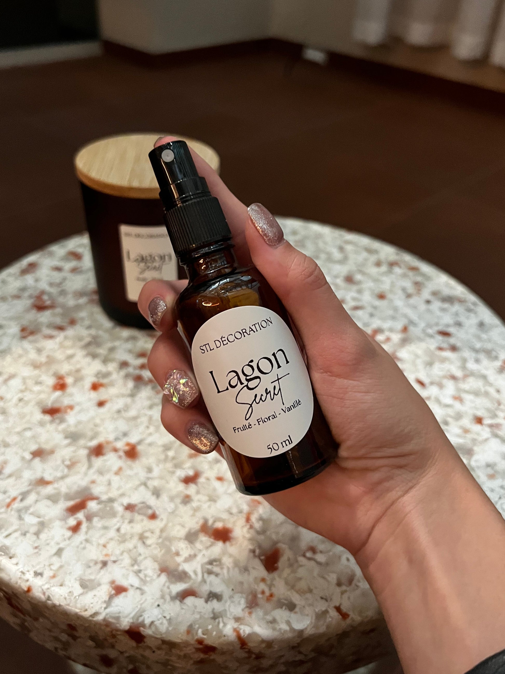 La brume d'intérieur LAGON SECRET est une invitation à l’évasion. Son parfum aux notes orangées, vanillées et florales évoque la douceur d’un lagon tropical, entre sable chaud et fleurs de tiaré. Conditionnée dans un flacon en verre ambrée minimaliste, tout en restant un objet décoratif.